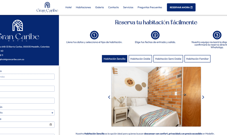 Ayudamos a Gran Caribe Hotel a desarrollar una Landing Page profesional, intuitiva y funcional, ayudando a convertir su proceso de venta y experiencia en un 100%, Zero Agency tu marca de confianza